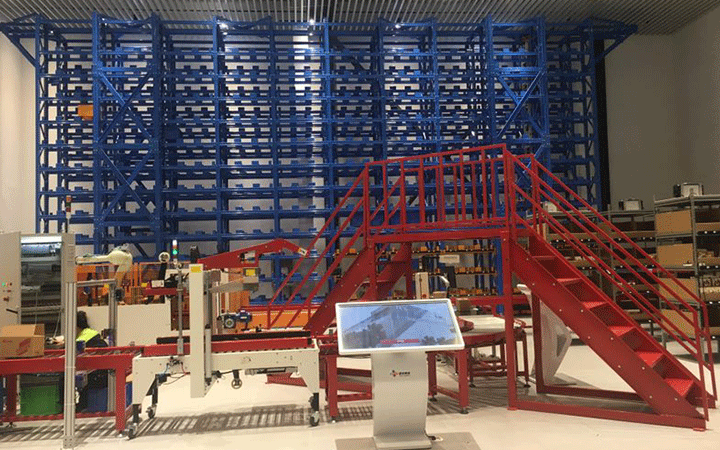 智能立體倉庫貨架通常是組合式鋼結構的建筑物或結構體,貨架內是標準尺寸的貨位空間,巷道堆垛起重機是整個自動化立體倉庫的核心設備,通過手動操作,半自動操作或全自動操作,穿行于巷道之間的巷道中,出入庫口利用各種輸送機或AGV/RGV等自行運動小車對接巷道堆垛機,實現(xiàn)把貨物從一處搬運到另一處,完成存、取貨的工作。