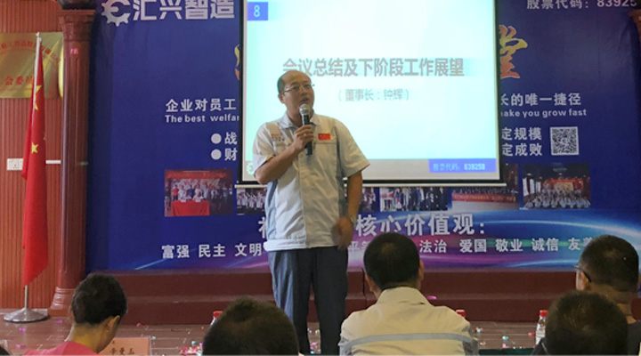最后,由鐘輝董事長(zhǎng)作會(huì)議總結(jié)及下階段工作展望。董事長(zhǎng)鐘輝表示:“陪伴才是最長(zhǎng)情的告白”感謝各位同事及貴賓對(duì)匯興智造一如既往的支持。企業(yè)的發(fā)展離不開(kāi)每一位的努力,未來(lái)匯興智造將快速發(fā)展的階段。沿著老路去不了新的地方,正如我們會(huì)議場(chǎng)上唱響的歌曲,相信我們創(chuàng)造奇跡。會(huì)議取得圓滿成功,集眾智,匯眾力,搶時(shí)間,抓機(jī)遇,全體匯興人,一諾千金,奮斗到底!