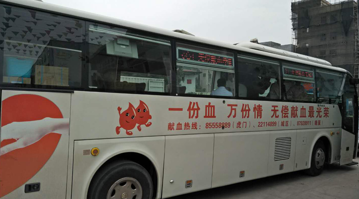 獻(xiàn)血車停在匯興智造大門口