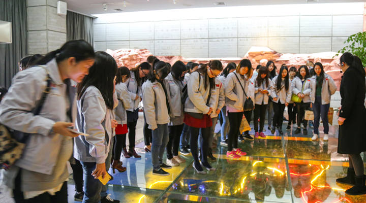 女神們?cè)跂|江縱隊(duì)紀(jì)念館觀看電子沙盤(pán)