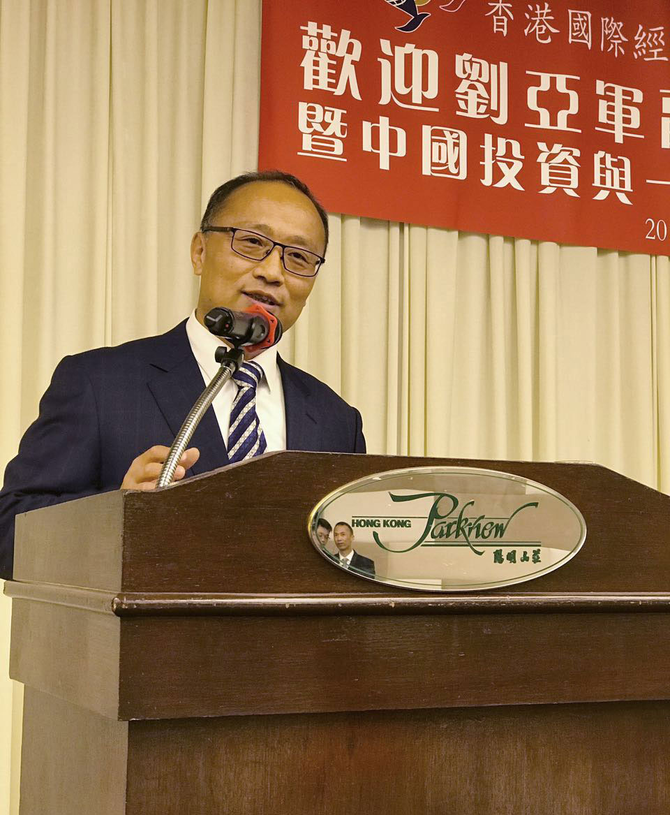 2017年3月8日,匯興智造董事長鐘輝受邀參加由香港國際經(jīng)貿(mào)合作協(xié)會會董委員會在港島陽明山莊舉辦的“歡迎劉亞軍副部長履新晚宴暨中國投資與一帶一路新年報告會”。