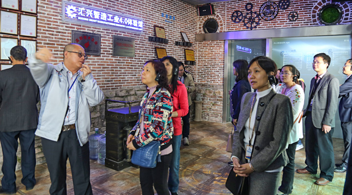 匯興智造董事長鐘輝陪同大家參觀工業(yè)4.0智能裝備體驗(yàn)館