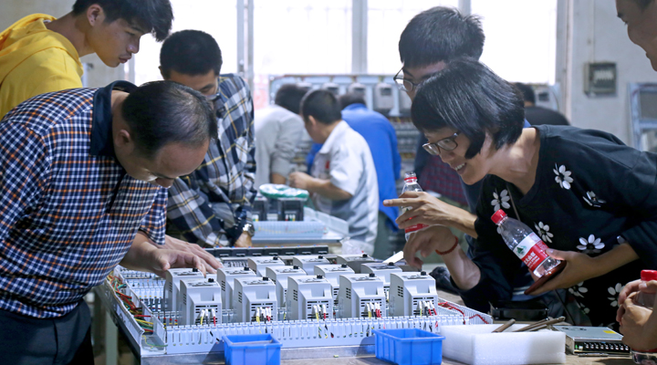 在車間,同學(xué)們看著工人熟練而又嚴(yán)謹(jǐn)?shù)亟o電箱接線,一片肅穆。有同學(xué)低聲道:“我們平時(shí)也接線,但與他們比較起來,就做得太粗糙?!庇袝r(shí)候距離的產(chǎn)生僅僅在于態(tài)度。在匯興,你可以體驗(yàn)科技,學(xué)習(xí)知識(shí),權(quán)衡方法。