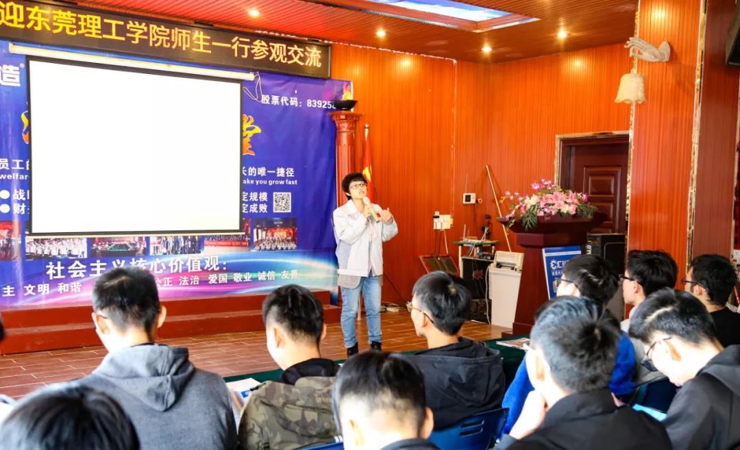 隨后,蔣明華在公司大會議室向師生們詳細介紹了公司的發(fā)展歷程、產(chǎn)品特點、核心優(yōu)勢、企業(yè)文化、人力資源、員工晉升通道等方面的概況,并熱忱歡迎東莞理工學院學子來公司參觀,更歡迎畢業(yè)的大學生來公司就業(yè)。
