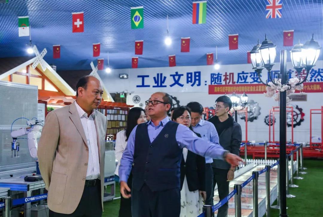 楊曉棠常委一行參觀智能制造工業(yè)4.0體驗(yàn)館、黨建陣地、社會(huì)主義核心價(jià)值觀宣傳長(zhǎng)廊、中德智能裝備研究院等。董事長(zhǎng)鐘輝介紹了公司發(fā)展概況,并匯報(bào)了公司增資擴(kuò)產(chǎn)、項(xiàng)目用地進(jìn)展等企業(yè)運(yùn)營(yíng)情況。