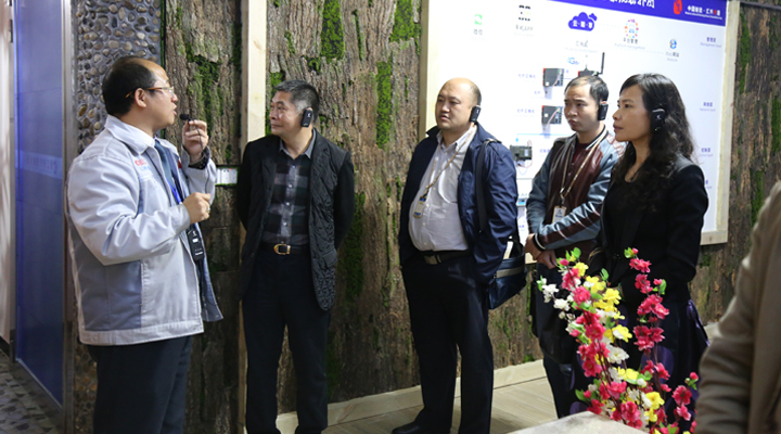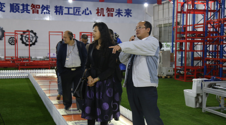 匯興智造董事長(zhǎng)鐘輝陪同來(lái)訪領(lǐng)導(dǎo)參觀智能裝備體驗(yàn)館
